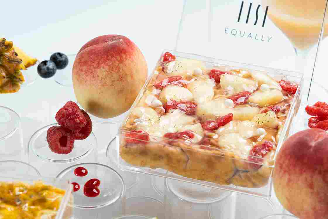 イクアリーの様々なパーツからつくるスペシャリティクレープをオリジナルのアクリルケースに詰めました。