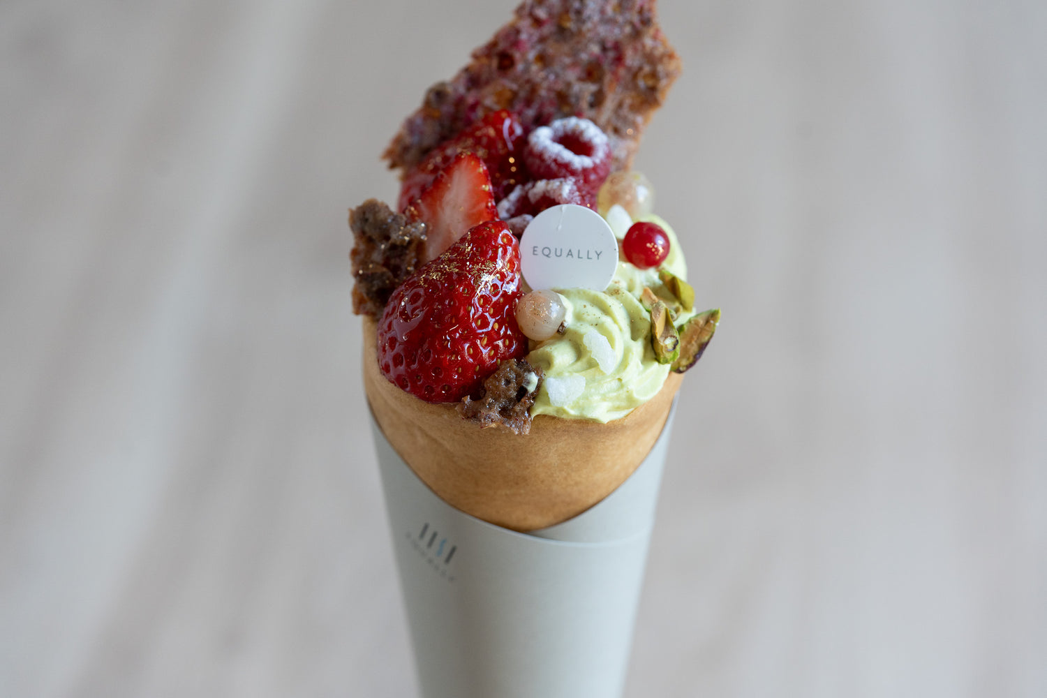 2024年に世田谷豪徳寺に「EQUALLY」の世界観を表現したパティスリークレープリーカフェ。ートインではクレープ、ガレット、コーヒーなどのドリンクを、テイクアウトではオリジナルのお菓子などをお楽しみいただけます。
