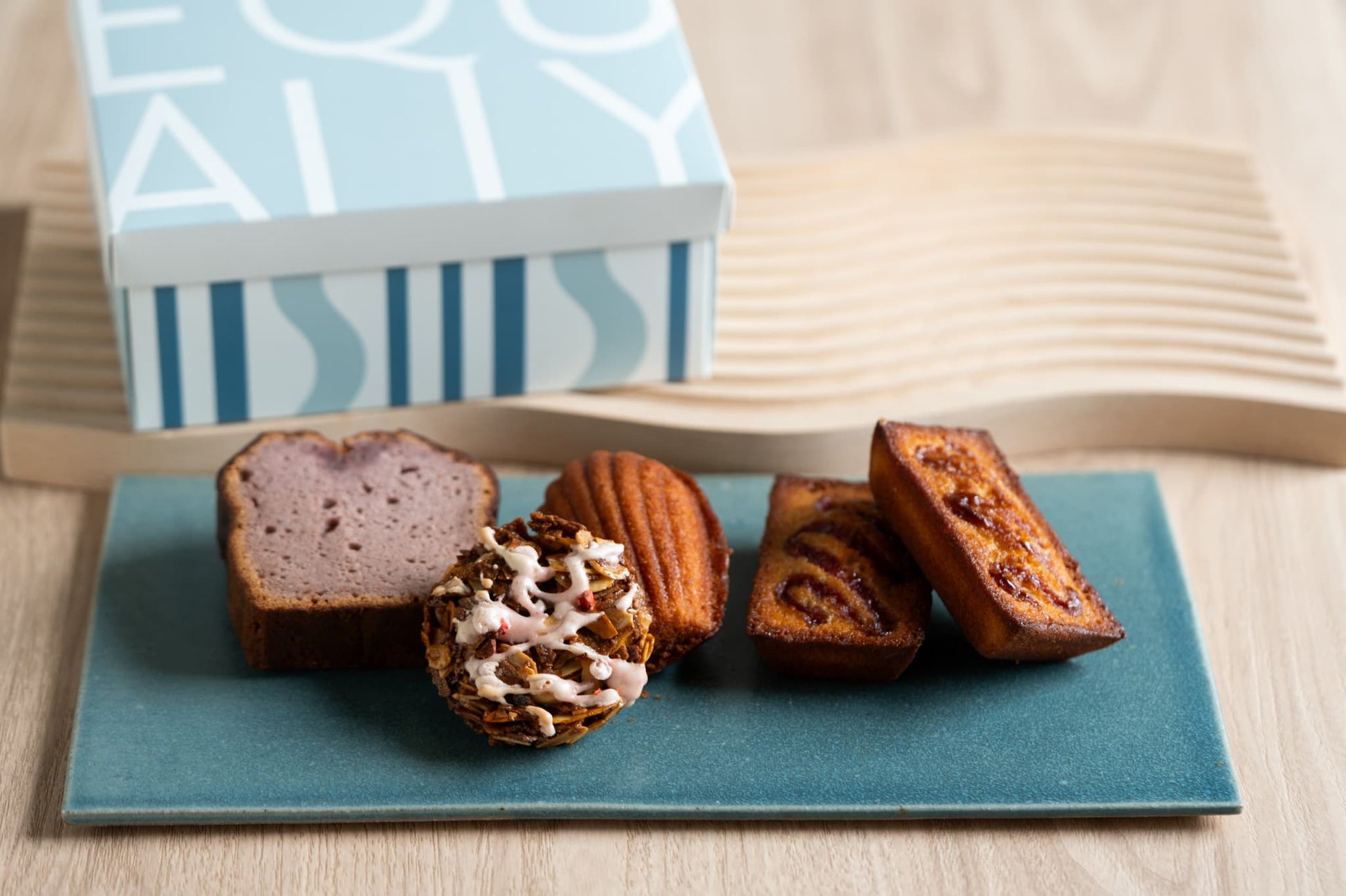 澄ましバターにしたフランス産発酵バター、相模原の農家さん直送の新鮮なたまごをたっぷりと使用したぷっくりとした見た目ふんわり食感がおいしいマドレーヌ。